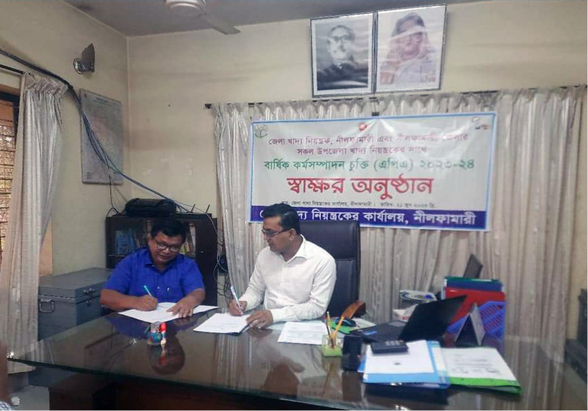 উপজেলা খাদ্য নিয়ন্ত্রক, নীলফামারী সদর, নীলফামারী এবং জেলা খাদ্য নিয়ন্ত্রক, নীলফামারী এর মধ্যে বার্ষিক কর্মসম্পাদন চুক্তি ২০২৩-২০২৪ স্বাক্ষর